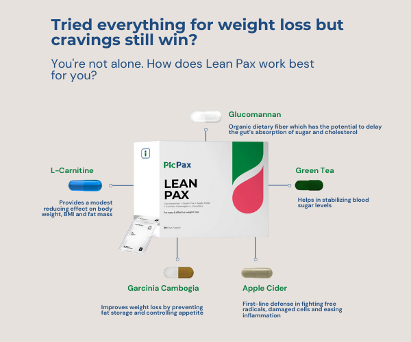 إذا كنت تعاني من مشكلة فقدان الوزن، فإن العثور على حل فعال يستهدف الدهون مع إدارة الشهية قد يكون أمرًا صعبًا. تم تصميم Lean Pax لمساعدتك على التغلب على هذه العقبات بمزيج قوي من المكونات الطبيعية. جلوكومانان يساعد على التحكم في الجوع من خلال تعزيز الشعور بالشبع، الشاي الأخضر يعمل على تسريع عملية التمثيل الغذائي لحرق الدهون بشكل أفضل، خل التفاح يساعد في تقليل تخزين الدهون، غارسينيا كامبوغيا يكبح الشهية، و إل-كارنيتين يساعد في تحويل الدهون إلى طاقة.