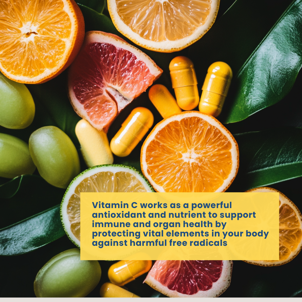 يعمل فيتامين ج على تعزيز جهاز المناعة من خلال تحفيز إنتاج خلايا الدم البيضاء وتحسين أدائها، كما يدعم صحة البشرة عبر تعزيز تكوين الكولاجين الذي يحسن مرونة الجلد وقد يقلل من ظهور التجاعيد. وتحمي خصائصه المضادة للأكسدة الخلايا من الإجهاد التأكسدي، مما قد يسهم في تقليل خطر الأمراض المزمنة. يُعد تناول فيتامين ج بانتظام ضرورياً للحفاظ على الصحة العامة وتعافي الجسم من الإجهاد البدني والإصابات.