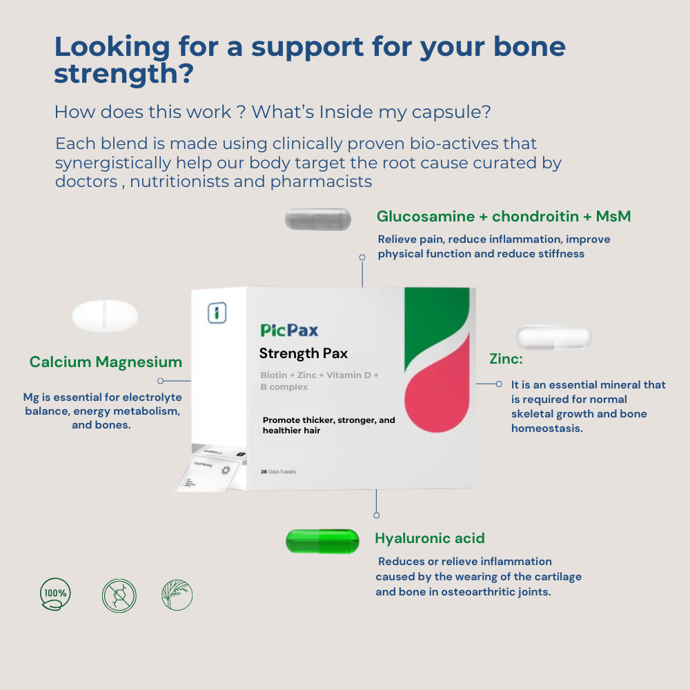 Strength Pax provides targeted nutrients to help manage these conditions and improve overall joint and bone health.
